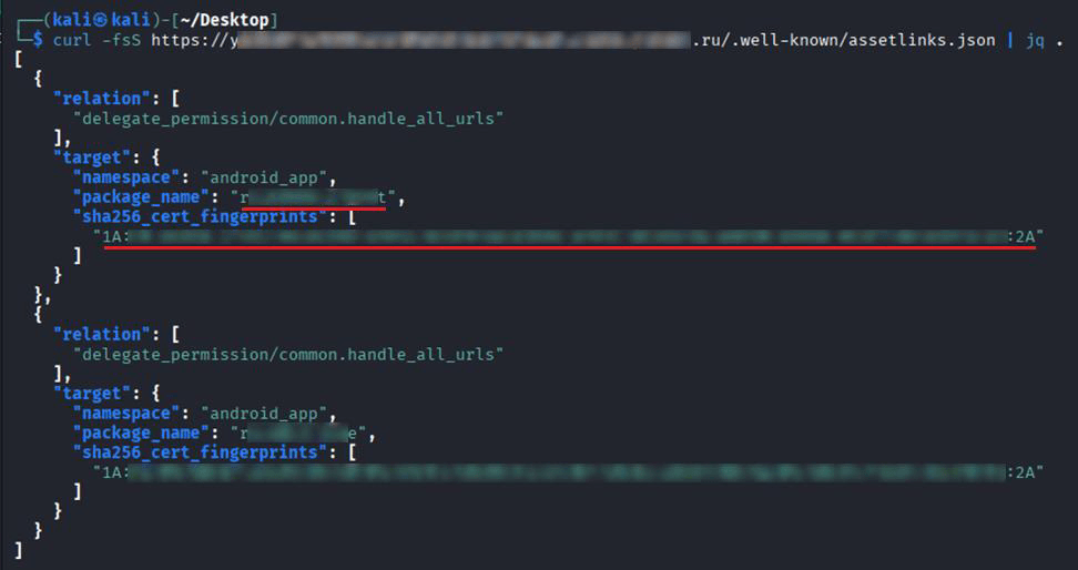 Стоит сказать несколько слов о слабых местах исследования. Нельзя забывать, что сканеры могут генерировать FP и выдавать некорректные результаты на отдельных участках приложений. К примеру, в одном из случаев MobSF посчитал, что на сервере нет assetlinks.json, поэтому злоумышленник может перехватить deep link. Мы вручную проверили наличие файла и получили идентификатор приложения, а также отпечаток сертификата SHA-256, которые совпадают с APK-файлом.