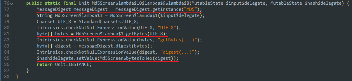 Байт-код и ресурсы могут содержать угрозы любого уровня. По этическим соображениям мы не можем показать критические уязвимости, поэтому остановимся на небезопасном алгоритме хеширования паролей: